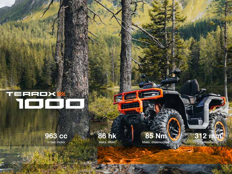 TERROX 1000 er en kraftfull ATV utviklet for deg som bruker maskinen som et arbeidsredskap – året rundt. Den kombinerer styrke og presisjon med en rolig og stabil kjørefølelse, uansett om du kjører i skogen, på gården eller langs gjørmete arbeidsveier.