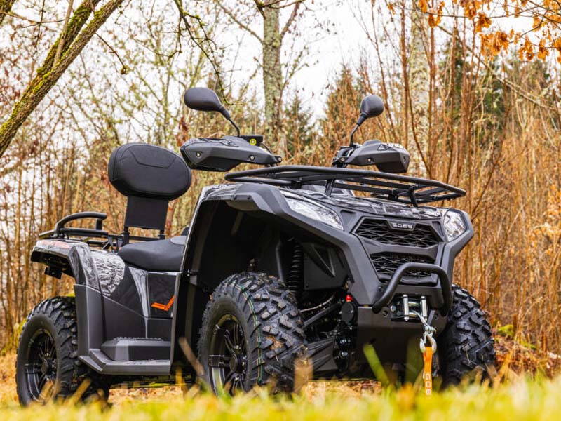 Med uavhengig hjuloppheng, 250 mm bakkeklaring samt vinsj, tilhengerfeste og passasjersete som standard, er den klar for arbeid året rundt.